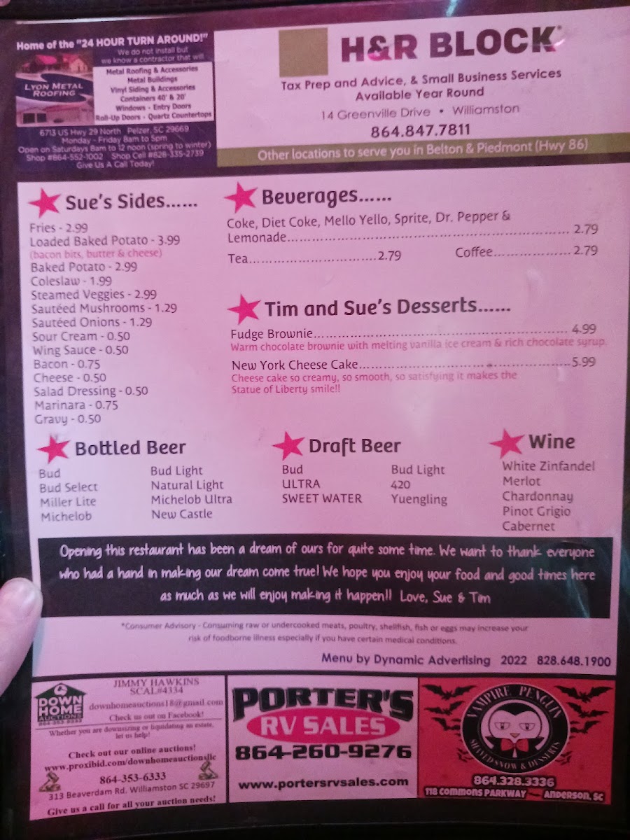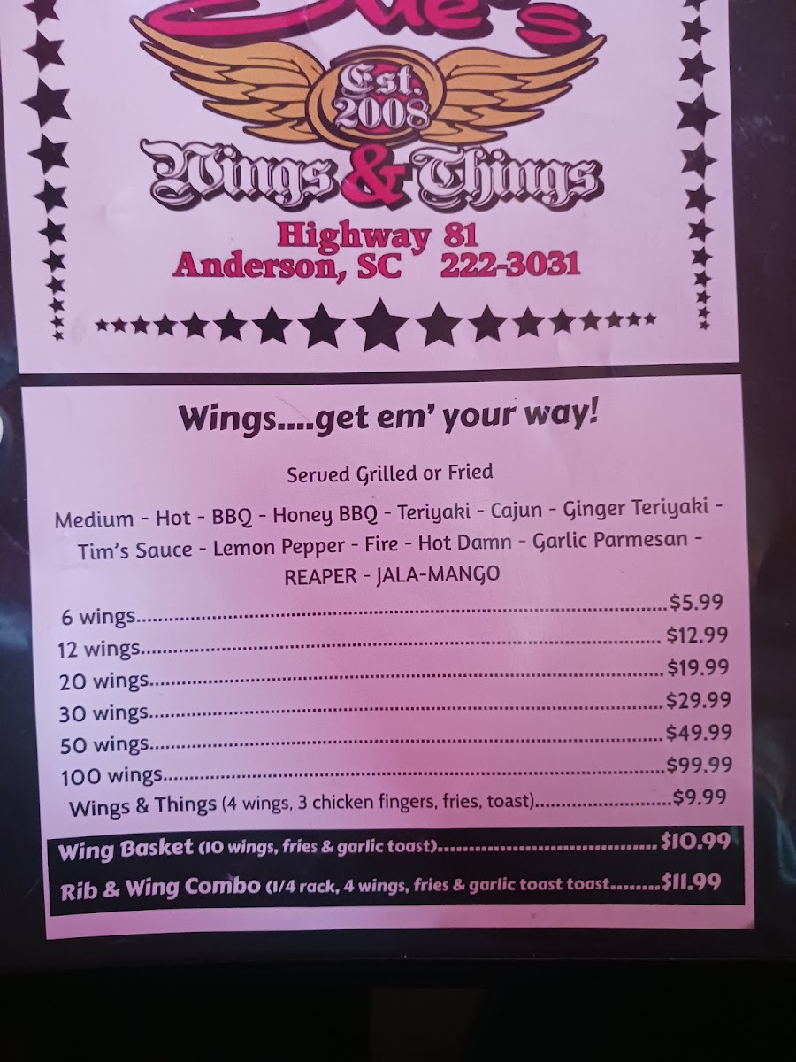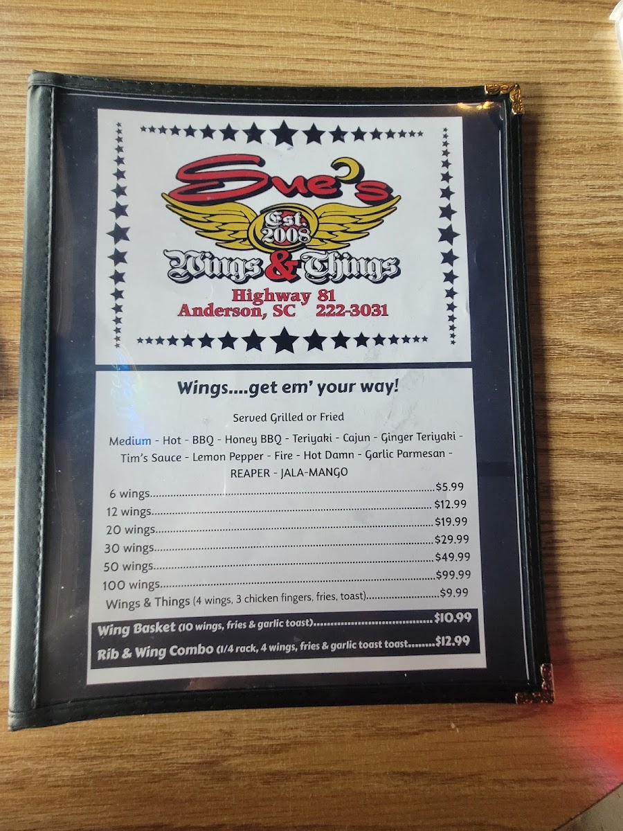 Sue's Wings & Things Menu