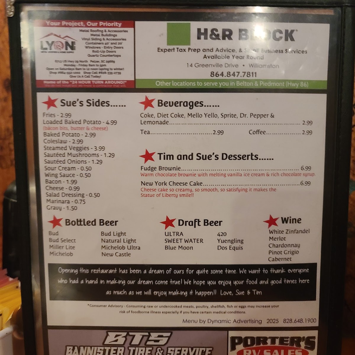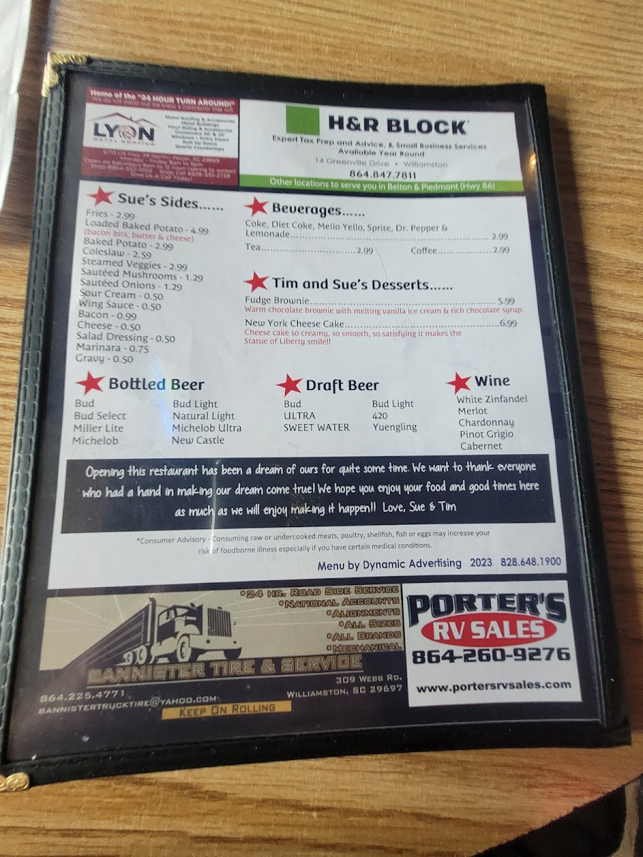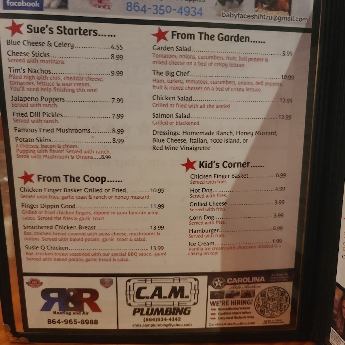 Sue's Wings & Things Menu